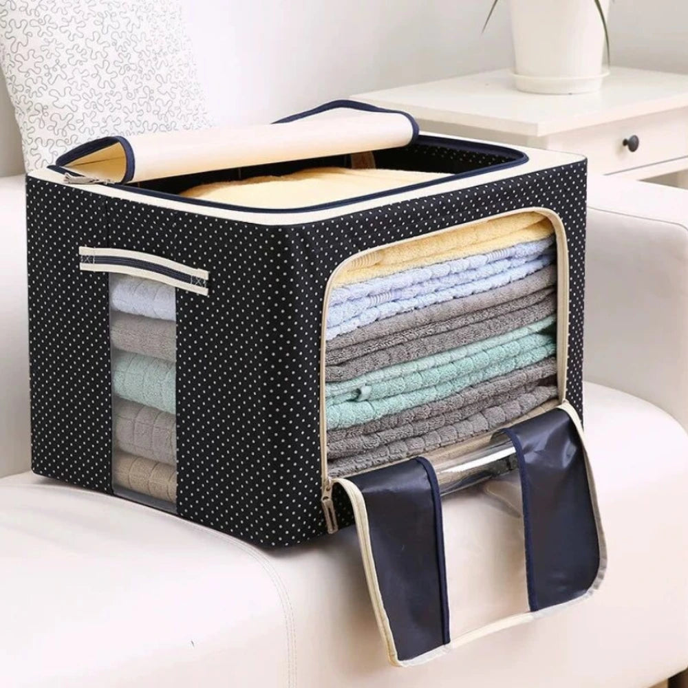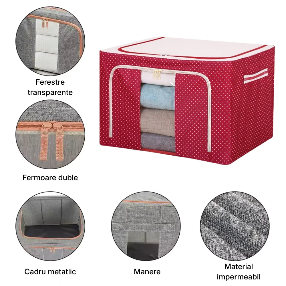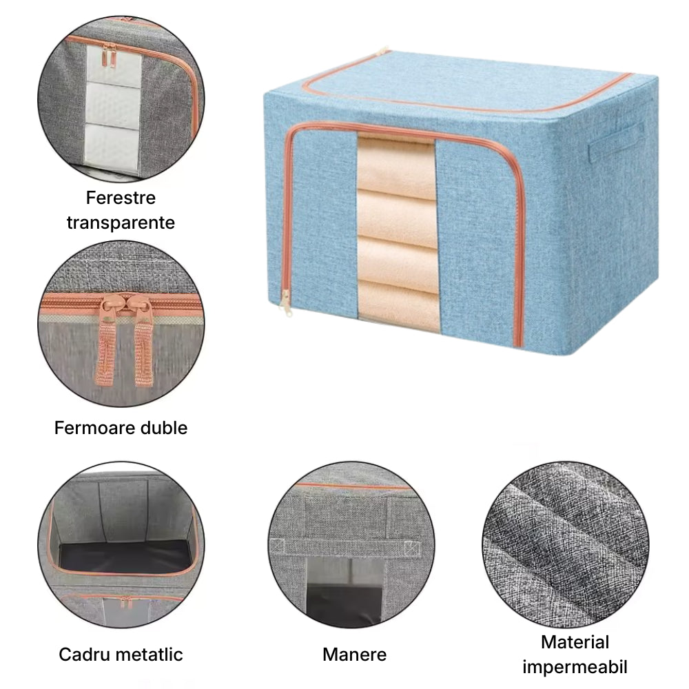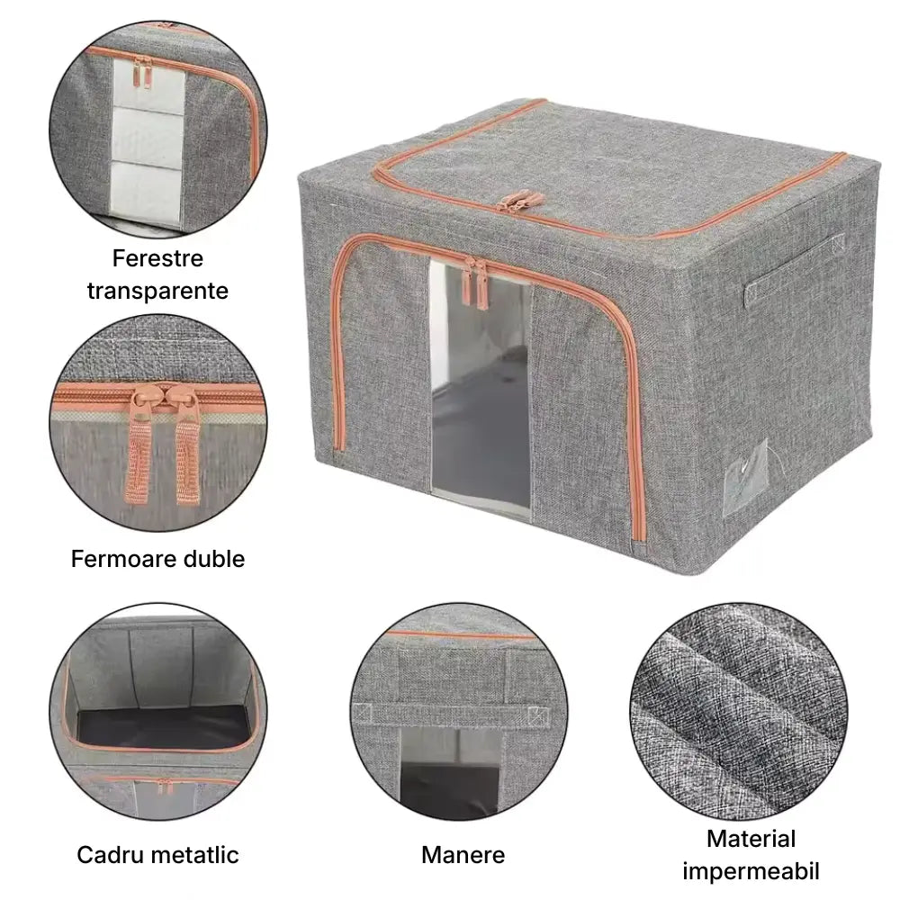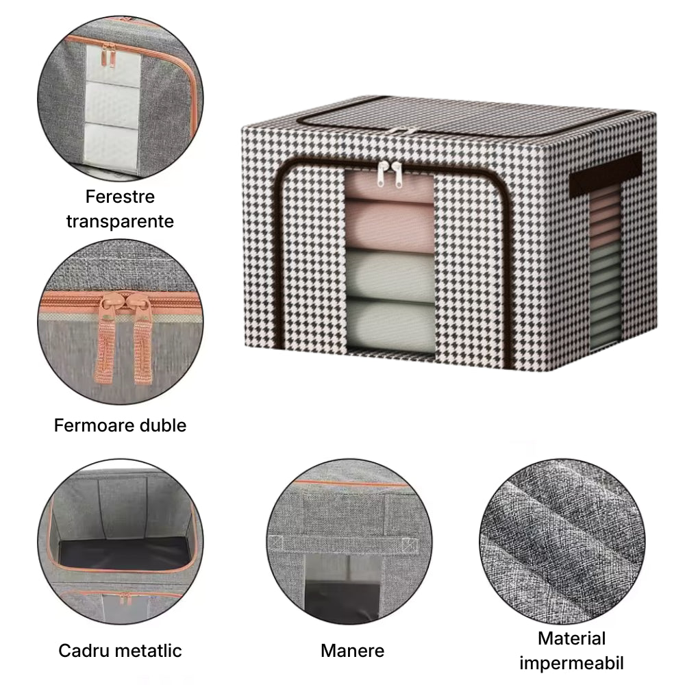 Transformi haosul in ordine in cateva secunde. Cutia pliabila cu cadru metalic pastreaza forma chiar si plina, iar ferestrele iti arata imediat ce este inauntru
