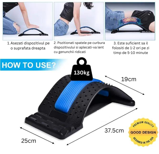 - Tehnologia avansata si designul ergonomic ajuta la intinderea musculaturii si ameliorarea durerilor de spate. Indiferent daca suferi de tensiune musculara sau disconfort cronic, acest dispozitiv iti ofera solutia la indemana pentru a-ti recapata starea de bine.