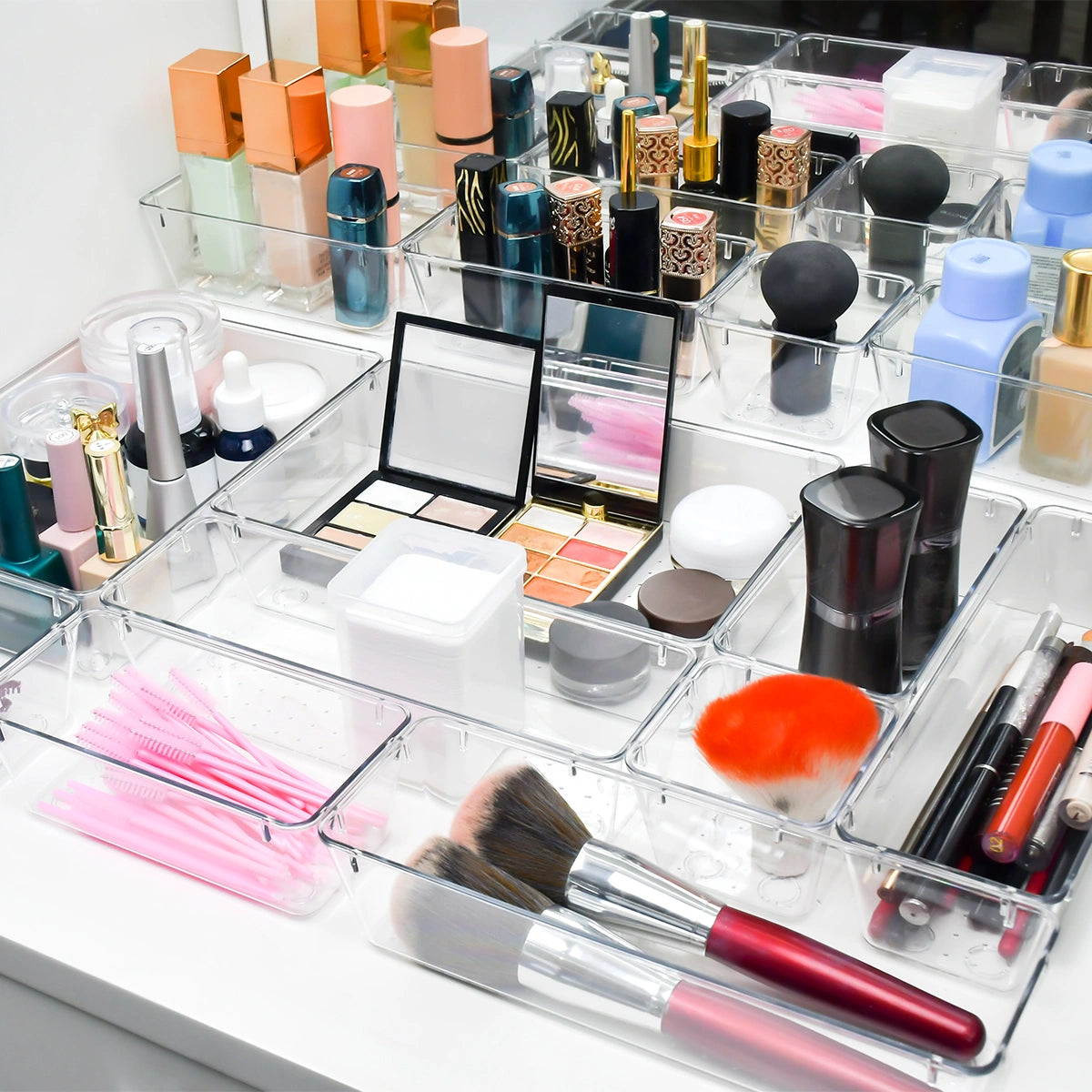 Fie ca separi alimentele in frigider, cosmeticele din baie, accesoriile de machiaj, bijuteriile, cablurile, produsele mici din birou sau alte articole din locuinta, setul iti permite sa creezi structura perfecta. Designul modular te ajuta sa potrivesti piesele ca un puzzle, astfel incat fiecare spatiu sa devina clar, aerisit si uor de folosit